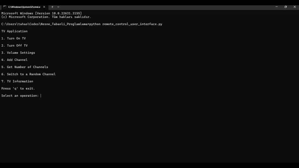 Welcome to the TV Remote Control System in Python! This project offers a simple and intuitive virtual TV remote control, enabling users to perform various actions such as turning the TV on/off, adjusting volume, adding channels, and more.